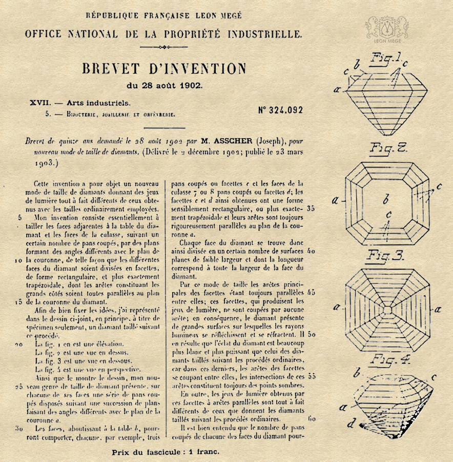 The Asscher cut was created by the diamond cutter Joseph Asscher. His Royal Asscher Diamond Company Ltd. was established in Amsterdam in 1854. The extended Asscher family is renowned for being excellent diamond cutters and polishers. They work with hard-to-cut odd-shaped rough and are known to produce beautiful gems.