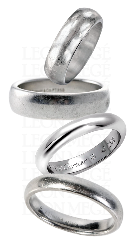 Leon Megé forges traditional, upscale wedding bands from high-grade platinum, sealing rough spots with a high-frequency laser beam. There are no soldering joints or casting seams.